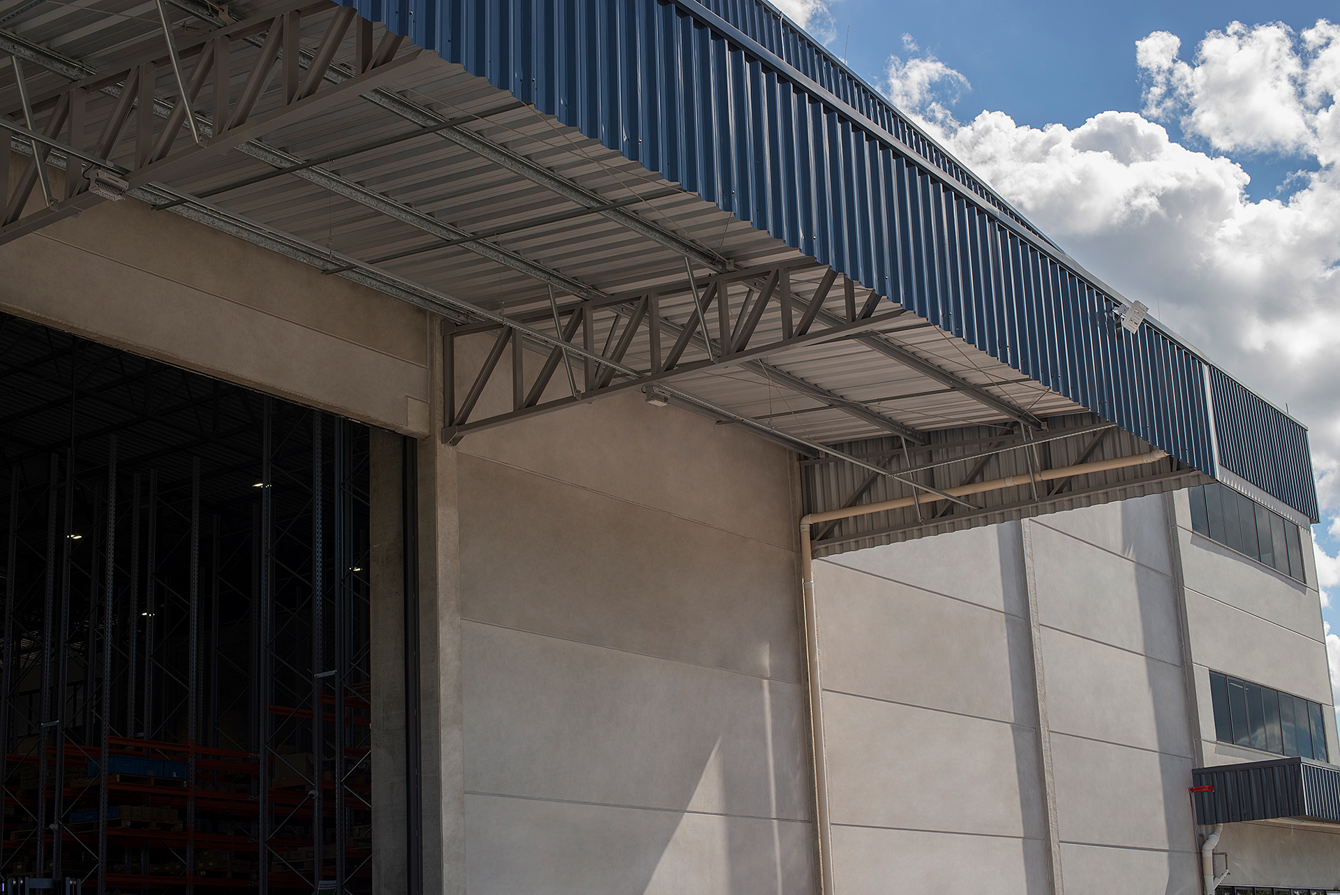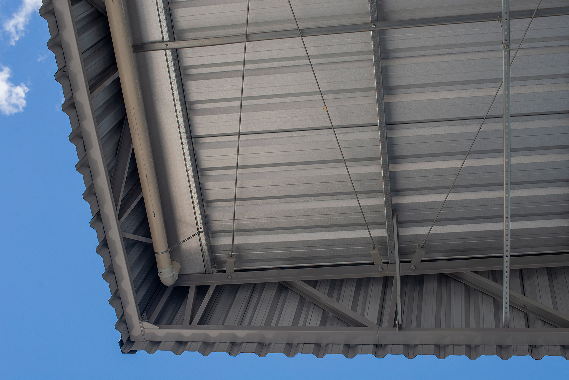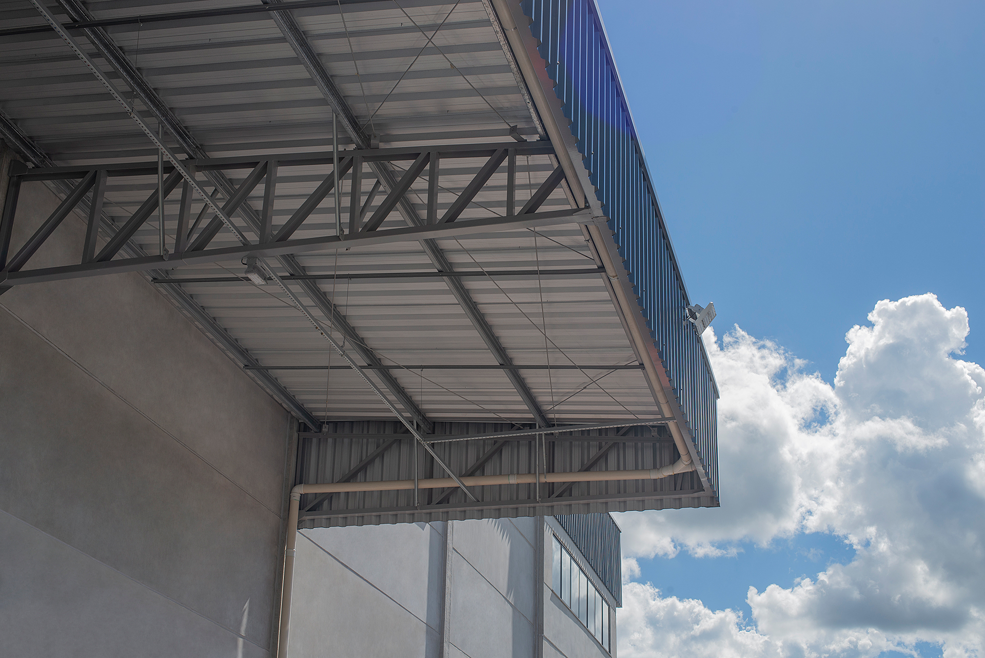 Estrutura mista de pré-fabricado e cobertura metálica.