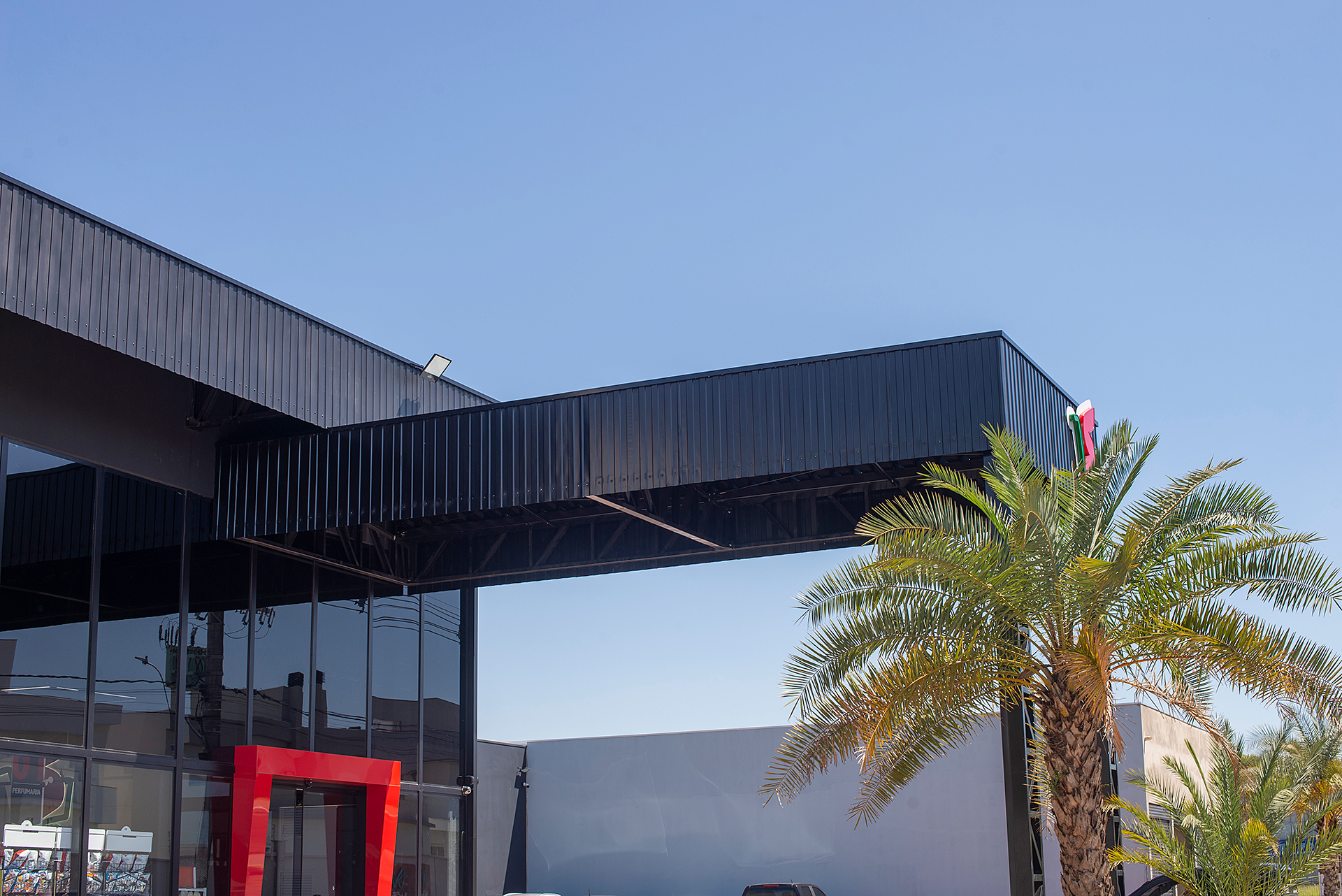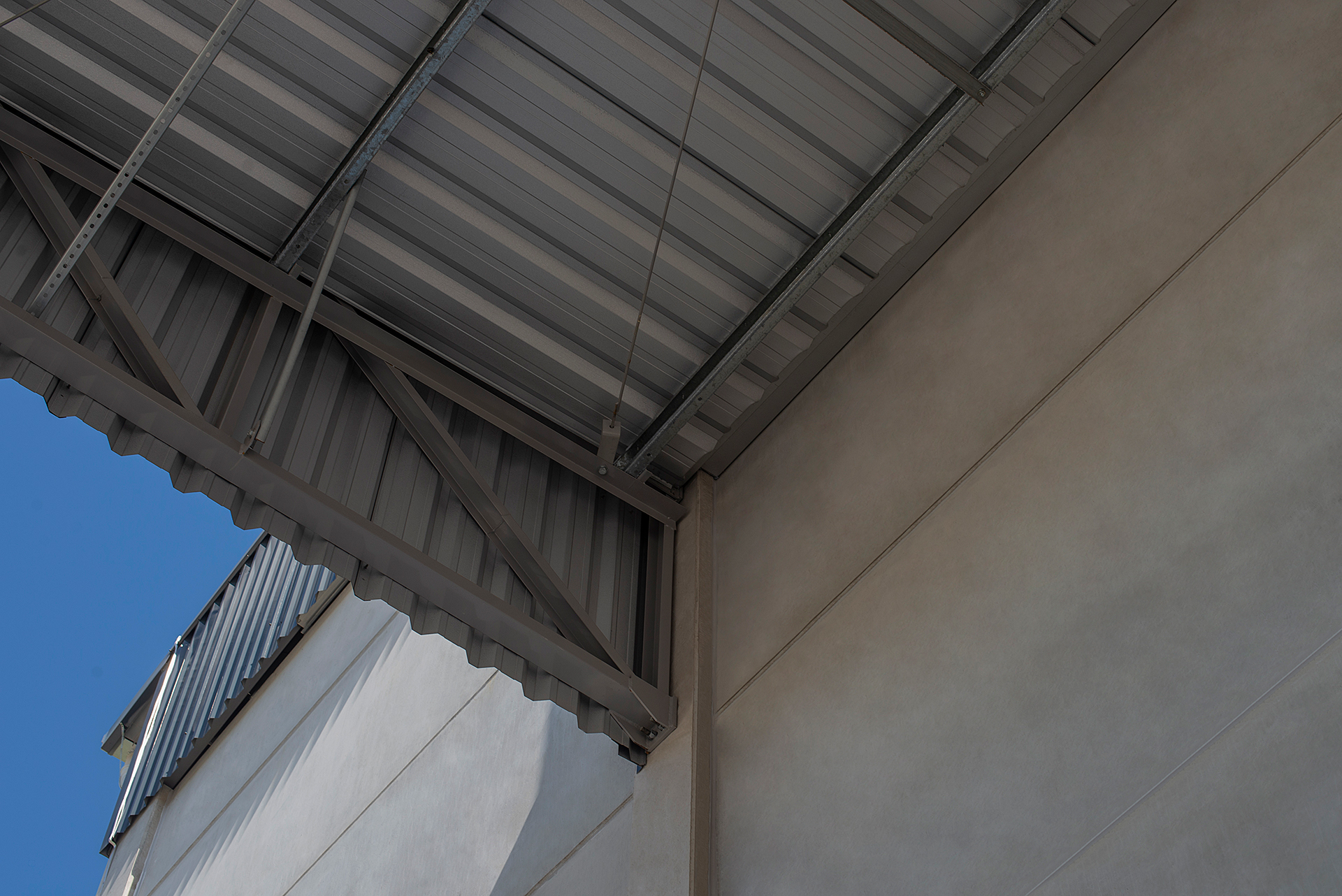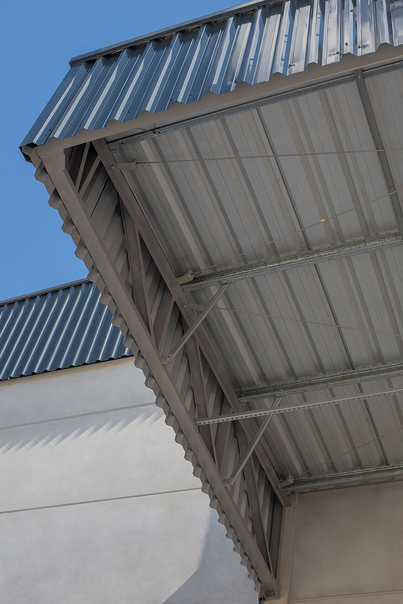 Estrutura mista de pré-fabricado e cobertura metálica.