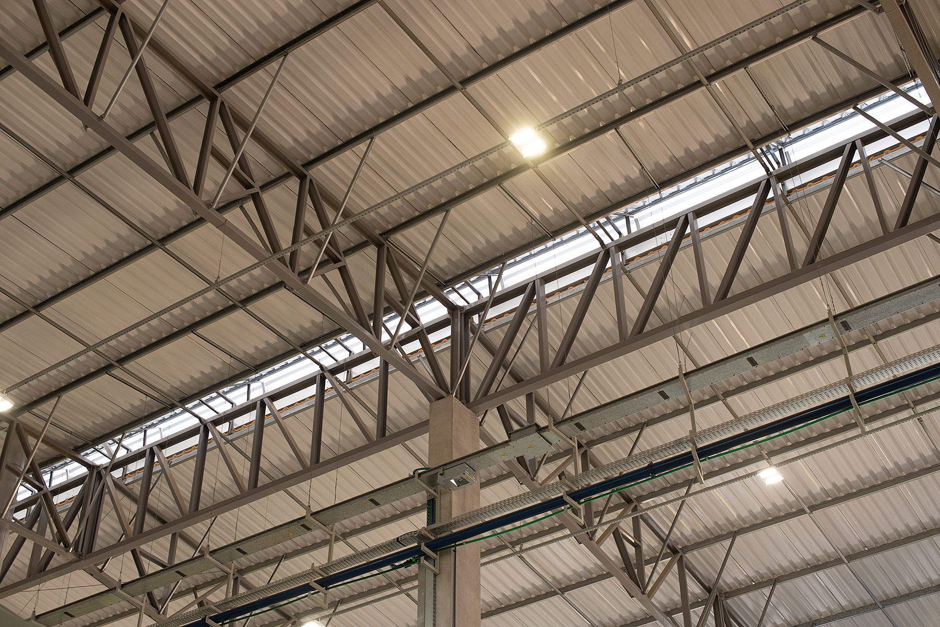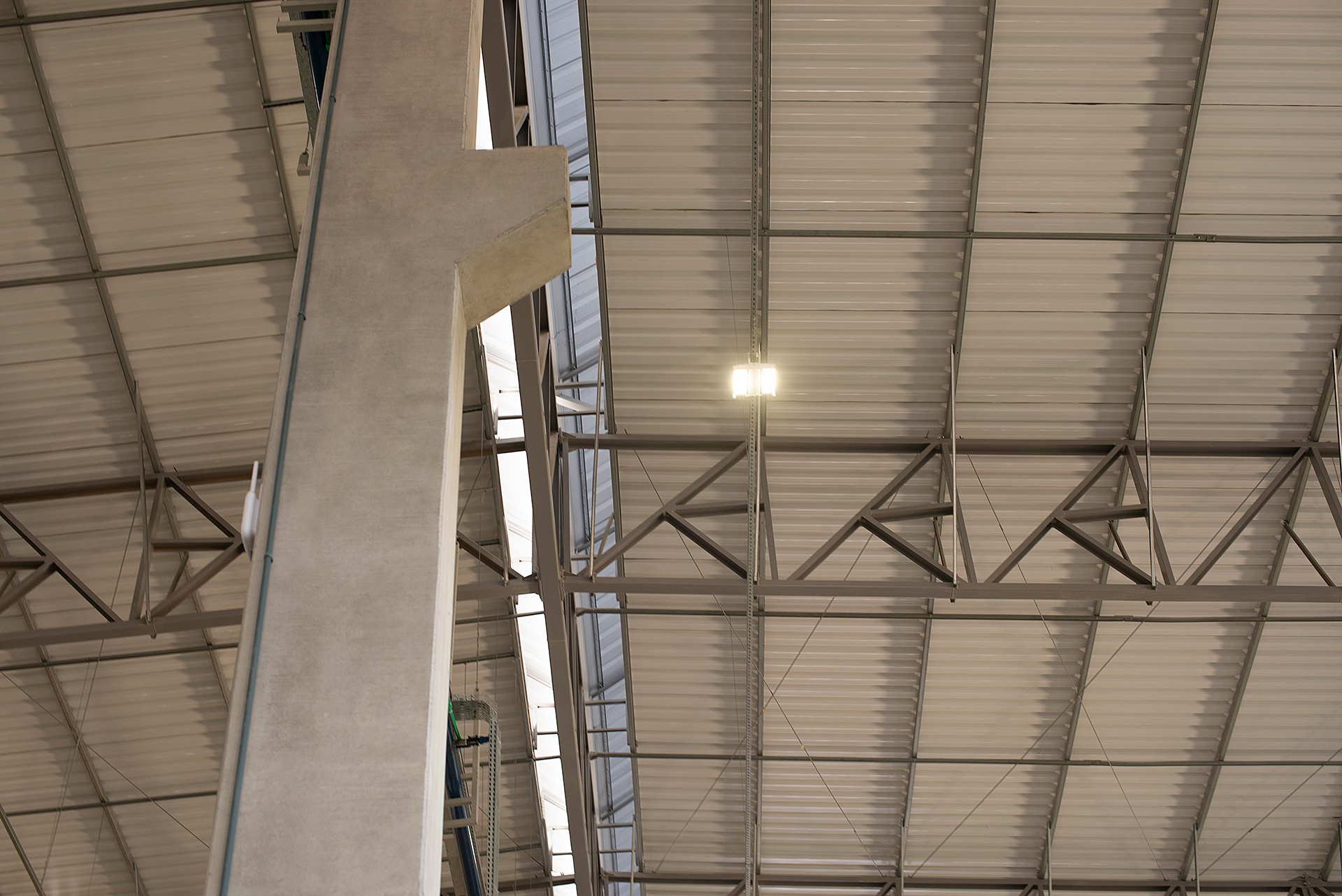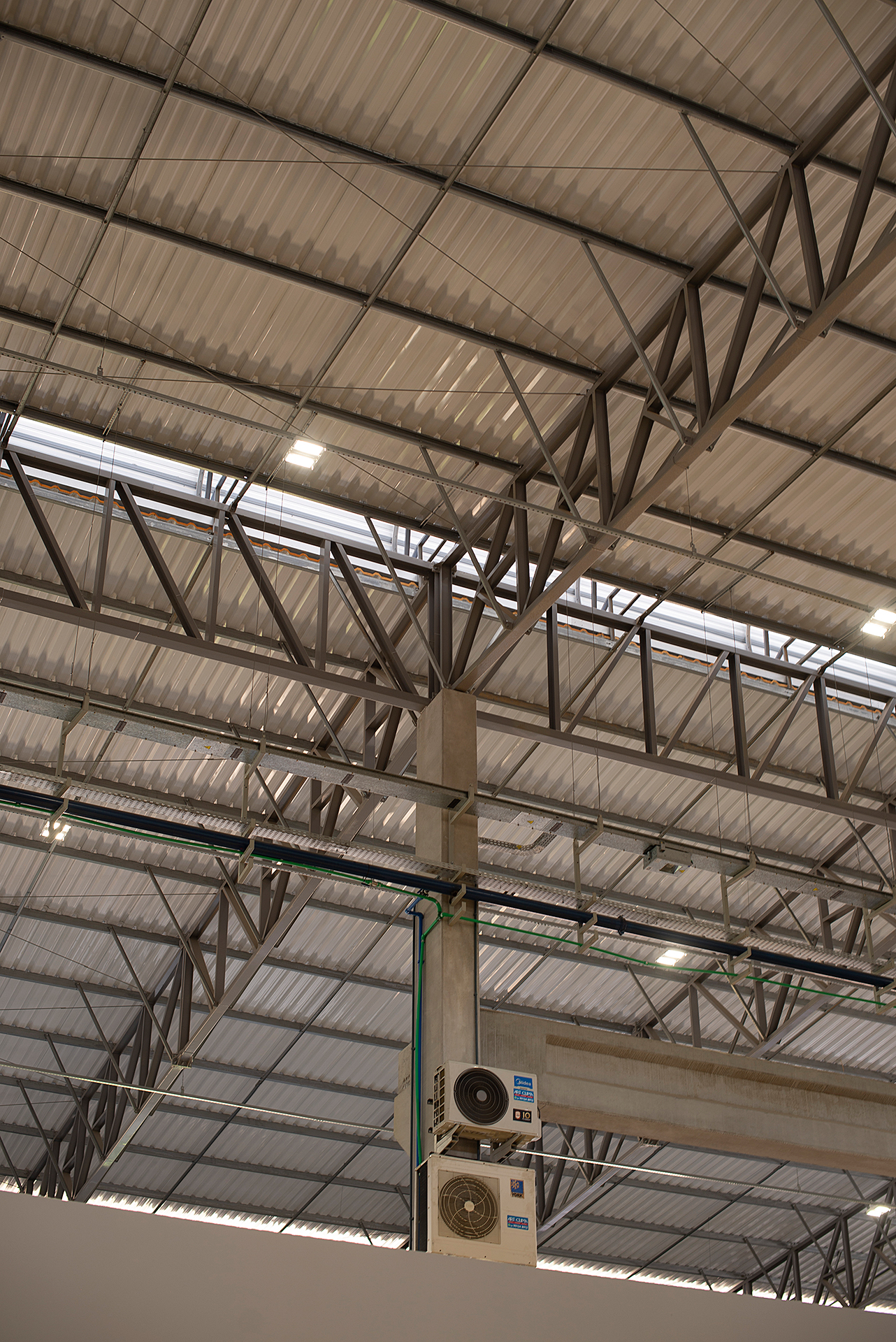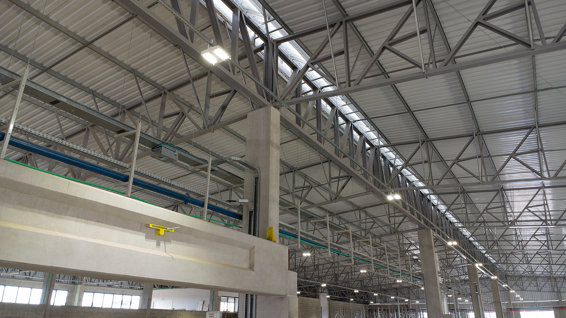 Diferencial: Estrutura mista de pré-fabricado e cobertura metálica. Neste projeto utilizou-se de vigas de transição metálicas na cobertura para diminuir o número de pilares na parte interna da fábrica sem abrir mão de um ótimo custo-benefício. Sistema de ventilação através de lanternim para melhorar as condições ambientais de trabalho.